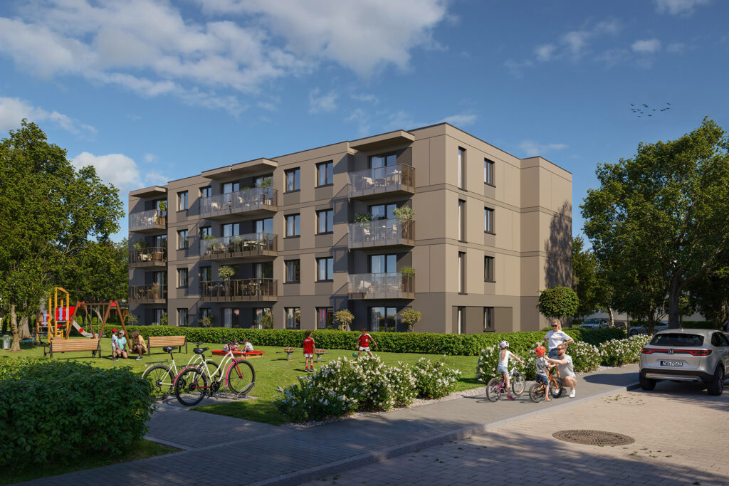 Każde mieszkanie ma balkon, taras lub ogródek, czyli prywatną strefę relaksu, w której złapiesz oddech po dniu pełnym obowiązków. Poranna kawa w promieniach słońca, kolacja pod gołym niebem czy chwila w ciszy z książką w ręku – tu codzienne momenty zyskują wyjątkowy klimat. Zadbana zieleń wokół budynków i przestrzeń wspólna z placem zabaw dla najmłodszych mieszkańców sprzyjają temu, by po prostu zwolnić tempo.